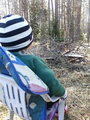 Idag har jag träffat farfar, faster, farbror ich kusin. Vi har hämtat saker från ett hus. Ett hus som farfar ska sälja till en annan farbror. Kusin P och jag har klättrat på stenar. Och så har jag och mamma plockat vitsippor och vattnat i växthuset.